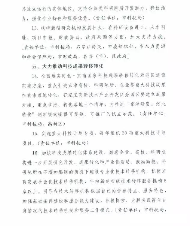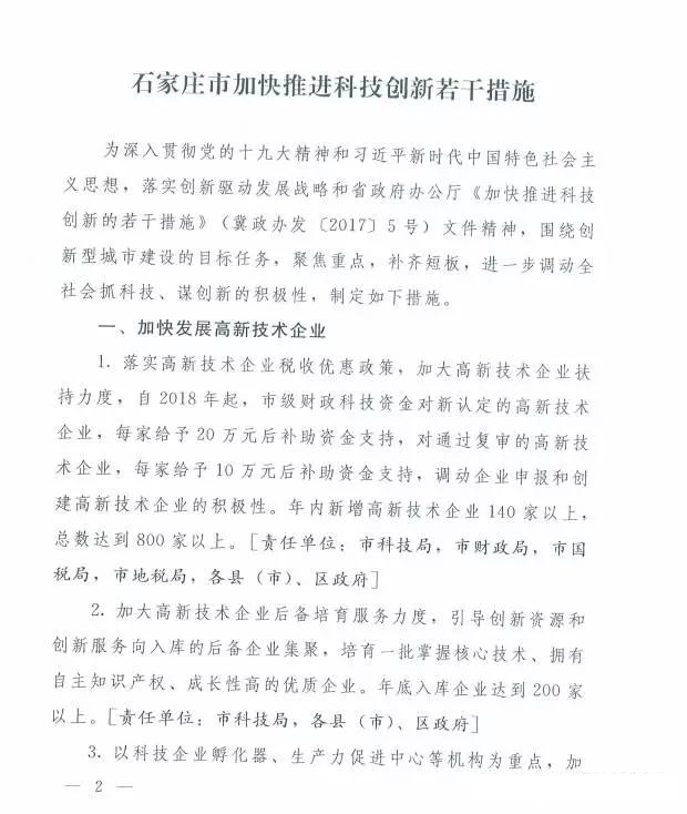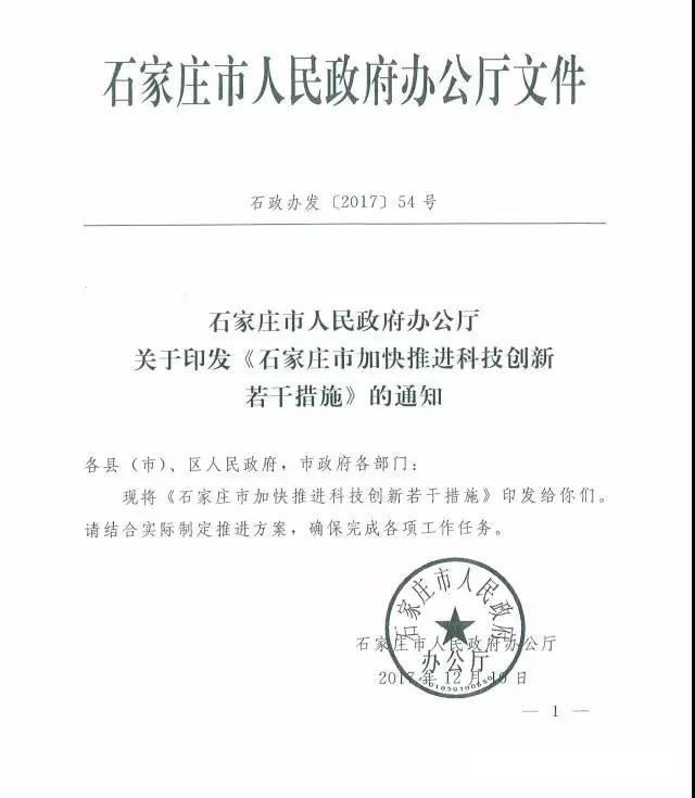 石家莊市政府辦公廳關于印發《石家莊市加快推進科技創新若干措施》的通知