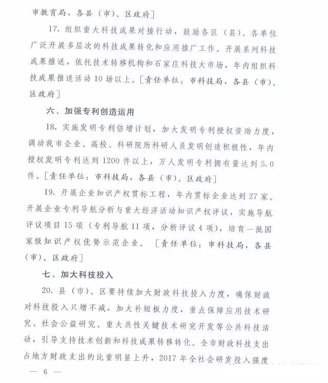 > 石家莊市政府辦公廳關于印發《石家莊市加快推進科技創新若干措施》的通知